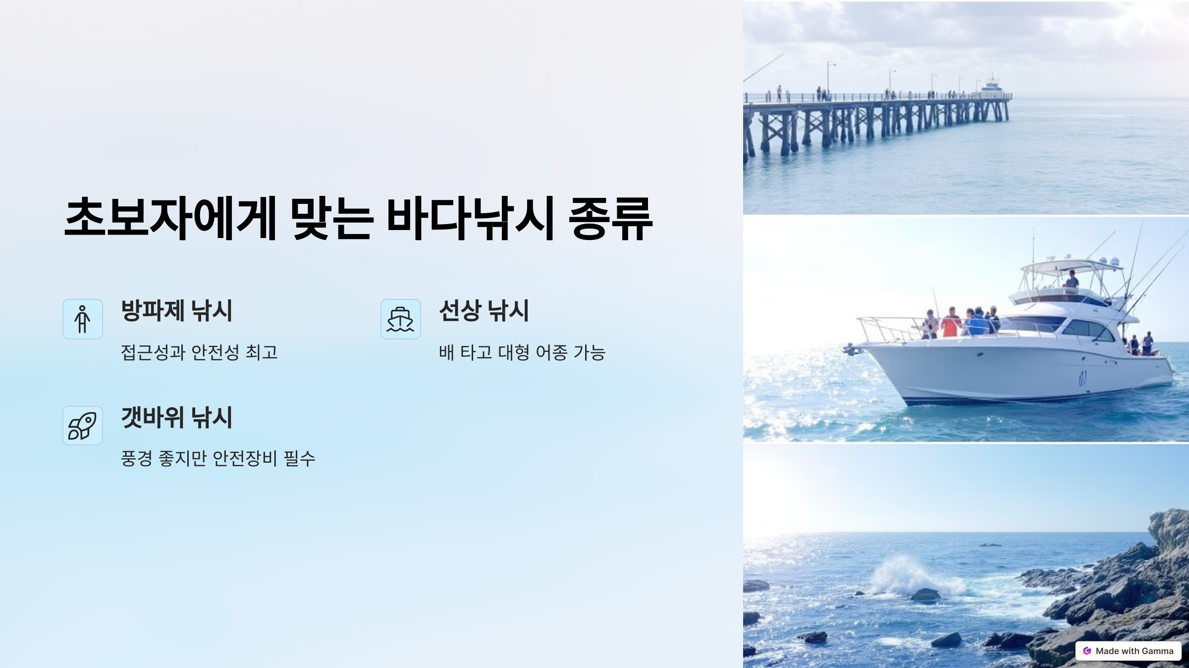 안녕하세요! 저는 최근에 처음으로 바다낚시에 도전해봤는데요, 처음이라 그런지 뭘 준비해야 할지도 모르겠고, 도대체 어디서 낚시를 시작해야 할지도 막막했어요. 저처럼 완전 초보였던 분들이 쉽게 시작할 수 있도록, 이 글에서 제가 겪었던 시행착오와 함께 꼭 알아야 할 준비물, 포인트 선정 팁까지 모두 정리해봤습니다. 여러분이 첫 바다낚시에서 멋진 추억을 남기실 수 있도록, 알차게 준비했어요!